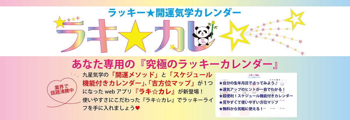 九星気学風水 気学9ガールズ 生年月日と性別を入力してください(西暦) -193519361937193819391940194119421943194419451946194719481949195019511952195319541955195619571958195919601961196219631964196519661967196819691970197119721973197419751976197719781979198019811982198319841985198619871988198919901991199219931994199519961997199819992000200120022003200420052006200720082009201020112012201320142015201620172018201920202021202220232024202520262027202820292030203120322033203420352036203720382039204020412042 年 -123456789101112 月 - 日性別 男性 女性結果を見る > 気配り上手なフェミニン女子 おっとり控えめな京風女子 キュートで明るいチャレンジ女子 ふわふわ穏やか愛され女子 存在感あふれる個性派女子 エネルギッシュなゴージャス女子 愛嬌抜群ロマンチスト女子 面倒見が良い姉御キャラ女子 キラキラ輝くマドンナ女子 気学9ガールズの紹介 気学9ボーイズの紹介 《 2023-6-29 》第九運が始まる前に!【下半期の運勢スペシャル(ワーク付き)講座・個別鑑定】《 2023-5-6 》運勢鑑定書start《 2023-5-6 》ビジネス気学start《 2022-2-8 》ニコニコ動画をご覧の皆様へ《 2022-1-15 》特別イベント in ザ・キャピトルホテル東急 開運気学BAMBOO!推奨講師とは、 九星気学カウンセラーchieから九星気学を学び、随時、講座を開催している方々です。 紹介ページを見る >