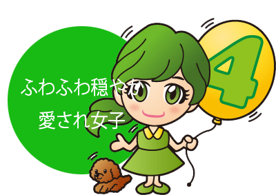 細かいことは気にしない。 明るくポジティブな性格。 甘え上手。飽きっぽい ところがあります。